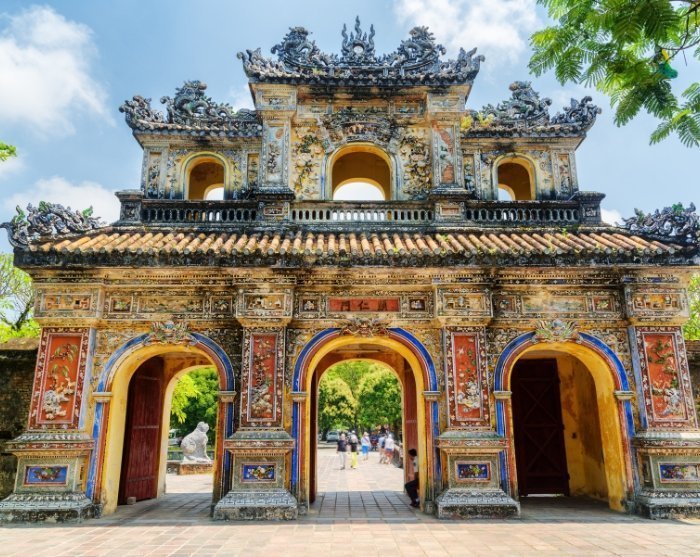 Herefter fortsætter turen til det afsidesliggende An Dinh-palads. Bygget i begyndelsen af 1900-tallet som bolig for kejserfamilien, forener paladset vietnamesisk kejserarkitektur med elegante europæiske elementer. Indenfor kan du beundre imponerende vægmalerier, guldornamenter og udsmykkede detaljer, mens de omkringliggende frodige haver emmer af ro og storhed.