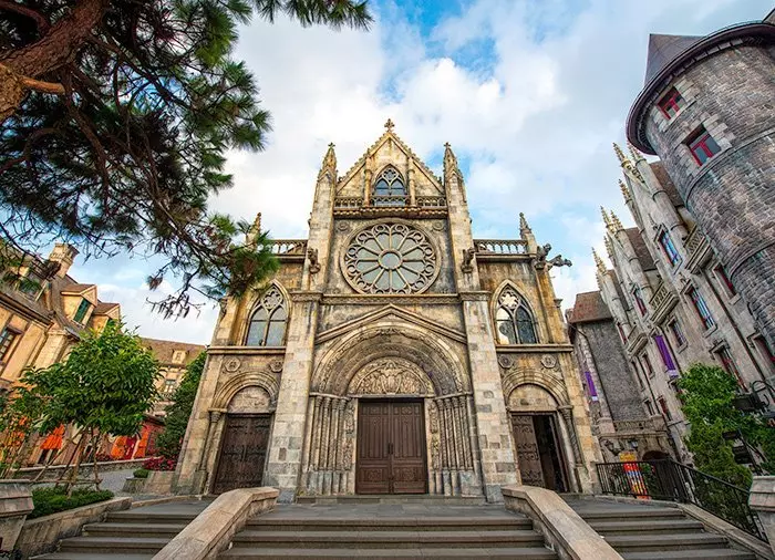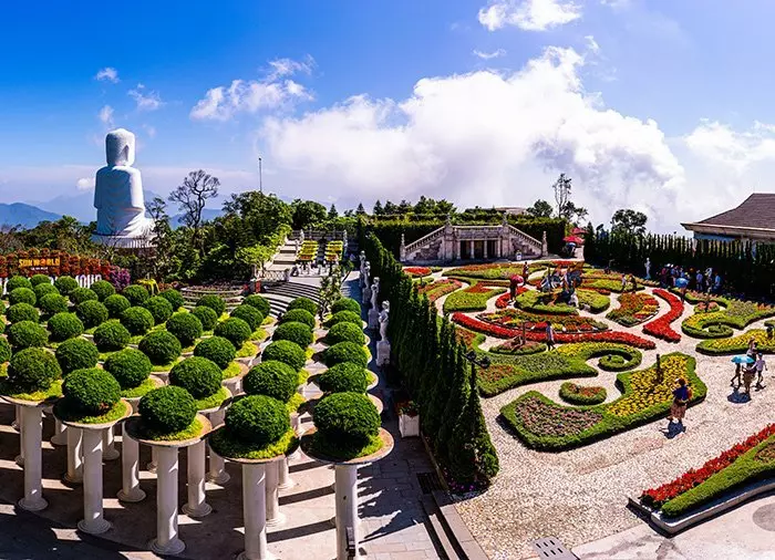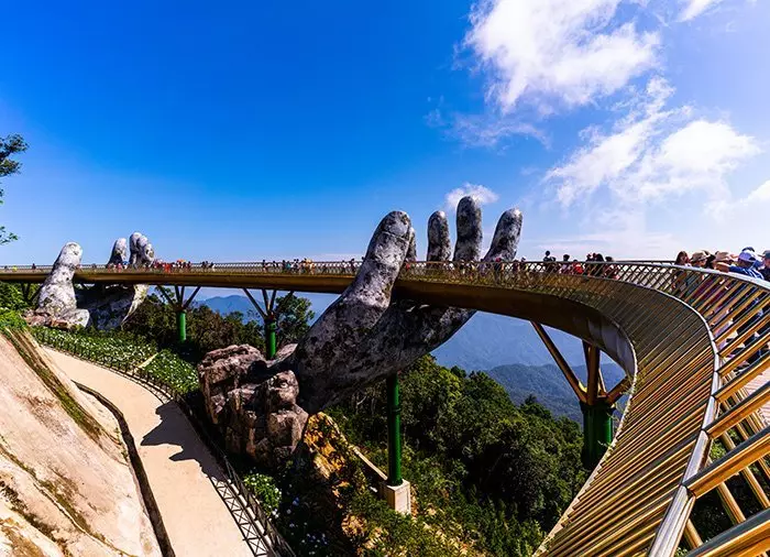 Guiden henter dig på hotellet fra morgenstunden og efter ca. 1,5 times køretur ankommer du til kabelbanen, der tager dig på en meget smuk 15-minutters tur op i 1400 meters højde. Et imponerende syn møder dig på toppen, hvor den gyldne bro pludselig dukker op svævende på 2 store hænder hugget i sten. Broen stod færdig i 2018 og er hurtigt blevet verdenskendt for dens spektakulære udformning midt i et magisk bjergområde og designet således, at det skal ligne, at Guds hænder løfter et stykke af jorden op til sig, som et fortov i himlen. Området på kabelbanens mellemstation blev oprindeligt etableret i 1919 af den franske kolonimagt bl.a. til at opbevaring af vin på grund af de køligere temperaturer, der typisk ligger 10 grader under temperaturen nede ved kysten. Her bliver der tid til at gå rundt i de smukke og farverige blomsterhaver også kaldet ”Le Jardin d’Amour”, Kærlighedens Have, hvor også en gigantisk hvid Buddha skuer ud over bjergkanten og de frodige bakker. Videre med kabelbanen op til toppen af bjerget bliver du budt velkommen af slotstårne. Du befinder dig nu i hjertet af parken og et eventyrligt landskab over forskellige skiftende temaer åbner sig for dig med f.eks. karneval i Rio, en fransk landsby, et japansk tehus og meget mere. Her har du fri adgang til de fleste forlystelser for både børn og voksne. Efter en dejlig frokost kan du på egen hånd springe ud i forlystelserne, bare gå rundt og nyde omgivelserne, købe lidt souvenirs eller tage et hvil på en af de mange caféer og restauranter eller i et roligt hjørne af parken som ved f.eks. Linh Ung-pagoden.
