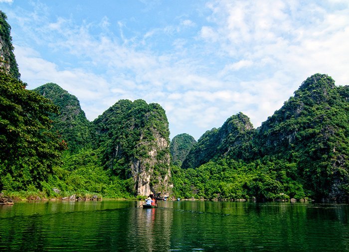 I det nærliggende Trang An går du ombord på en sampan – en lille flad træbåd. Læn dig tilbage og nyd den 2,5 times sejltur, men du stille vugger på floden gennem maleriske landskaber blandt bølgende rismarker og grønklædte kalkstenslipper, der skyder op i landskabet. Landskaberne er på UNESCOs verdensarvsliste og kaldes Ha Long-bugten på land. Undervejs sejler du gennem flere grotter og kan nyde det rige fugleliv. På land igen går turen tilbage til Hanoi.