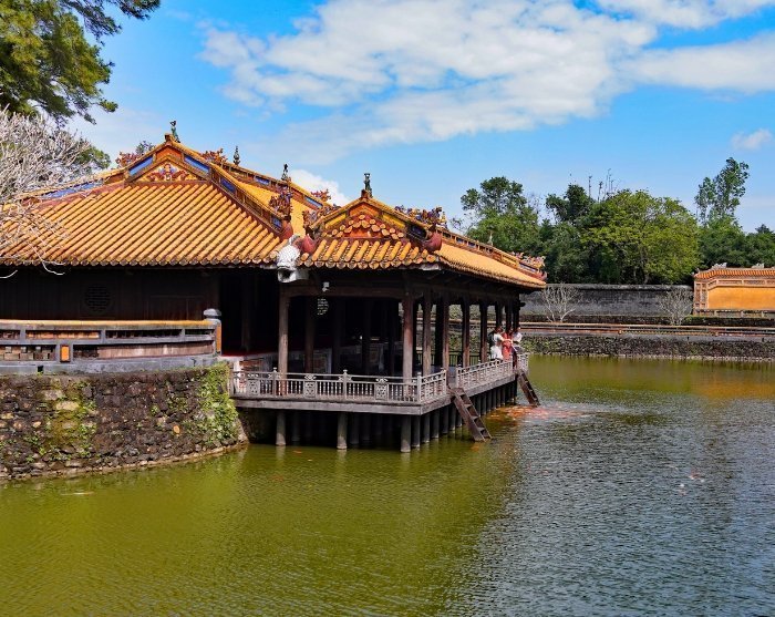 Du bliver hentet på hotellet af din guide og køres herfra til kejser Tu Ducs ejendom og gravsted, som ligger i en naturskøn dal nær Hué. Tu Duc var den 4. kejser af Nguyen-dynastiet i Vietnam, og han regerede fra 1847 indtil sin død i 1883. Han opførte ejendommen efter ønske om at skabe et paradis, hvor han kunne finde tid til ro og refleksion. Her tilbragte kejseren de sidste år af sit liv, omgivet af grønne skove, fredelige vandrestier og smukke pavilloner, hvor han i ro og mag kunne udfolde sine poetiske evner. Kejserens gravsted ligger smukt for enden af en lagune, og området udstråler en harmonisk sammensmeltning af imponerende arkitektur og naturens skønhed. Selvom han opførte dit eget gravsted på grunden, er kejser Tu Duc slet ikke begravet her; hans rester er derimod begravet et ukendt sted, som blev beskyttet af tusinder af tjenere, der senere blev henrettet for at bevare hemmeligheden om gravens placering. Dette har bidraget til en mystisk atmosfære omkring stedet.