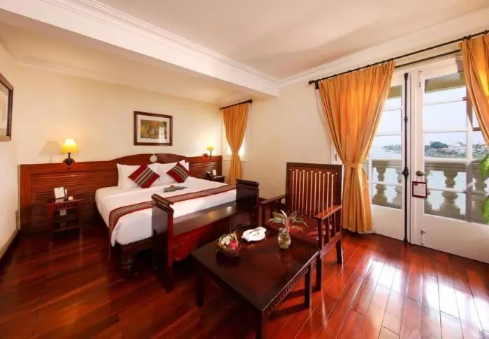Du bor som udgangspunkt i et superior-værelse, der er lyst og indrettet i rolige jordfarver, som skaber en behagelig og afslappet atmosfære. Store vinduespartier lukker dagslyset ind og giver en fin forbindelse til omgivelserne udenfor. Værelset har aircondition, tv, wi-fi, elkedel og et rummeligt badeværelse med bruser. Derudover har du en lille balkon med udsigt til haven eller floden – et oplagt sted at slappe af, når du vender hjem efter dagens oplevelser.