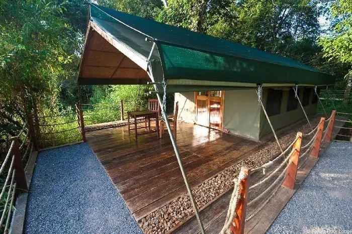 Overnatning foregår i luksustelte, der er specialdesignet til troperne. Teltene ligger hævet over jorden på en platform bygget af træ og med udsigt over Ben Cu strømstedet. Teltene er forbundet med lodgens hovedbygning via et netværk af gangbroer. Alle telte har enten dobbeltseng eller to enkeltsenge, eget badeværelse, minibar, vifte og aircon. Foran teltet er der en dejlig balkon med et par stole, hvorfra man kan nyde solopgangen over floden og høre gibbonabernes kald.