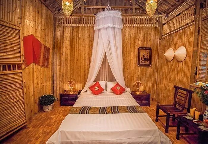 Hver af resortets 19 bungalows er opdelt i to luksuriøse og rummelige værelser, hvert med eget badeværelse og terrasse med udsigt over haven. Værelserne er smagfuldt indrettet med lokale træsorter, sten, keramik og fliser med traditionelle mønstre for at give dem en raffineret charme.