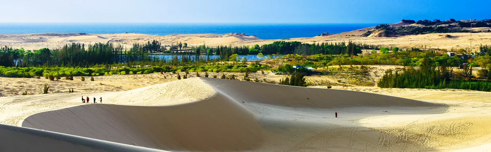 Området er særligt kendt for sine imponerende sandklitter, som havbrisen konstant former til bølgende landskaber, der leder tankerne hen på Sahara.