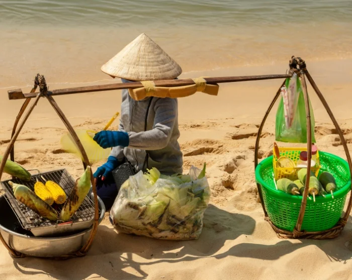 Phu Quoc har en rolig og afslappet atmosfære med små strandbarer og lokale restauranter, der serverer friskfanget fisk og skaldyr samt klassiske vietnamesiske retter.