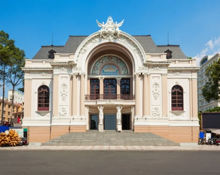 Du passerer Saigon Operahus, et arkitektonisk mesterværk fra 1901 og et levende symbol på byens kulturelle arv. Fra at have fungeret som beskyttelsesrum til senere at huse det sydvietnamesiske parlaments underhus har operahuset haft en bemærkelsesværdig historie.