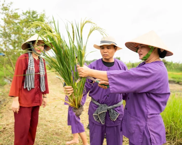 Du fortsætter til vores vores sociale bæredygtighedsprojekt i Vinh Long, som er startet af vores lokale samarbejdspartner. Her venter en rolig gåtur gennem landsbyen, hvor din guide undervejs giver dig indblik i projektet. Du får også mulighed for at tage del i det traditionelle landbrugsliv. Sammen med lokale bønder prøver du kræfter med risdyrkning, enten ved at plante de spæde risplanter eller ved at hjælpe til med høsten, alt efter sæsonen. Det er en lærerig og jordnær oplevelse, der giver dig et unikt indblik i hverdagen i Vietnams landdistrikter og i det arbejde, der ligger bag et bæredygtigt landbrug. Når du deltager på turen, er du samtidig med til at gøre en forskel for familierne i Vinh Long, da en procentdel af rejsens pris går direkte til projektet, som du kan lære mere om her.
