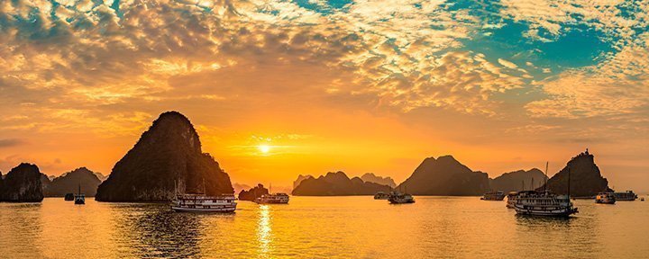 Du starter i den vietnamesiske hovedstad, Hanoi, hvor du oplever byens betydningsfulde templer og det gamle kvarters charme og pulserende gamle gader. Du sejler blandt hundredvis af grønne kalkstensklipper i Ha Long-bugten på et minikrydstogt, og undervejs har du mulighed for at bade ved Ti Top-øens gyldne strand og kigge udover bugten fra øens udsigtspunkt.