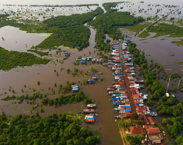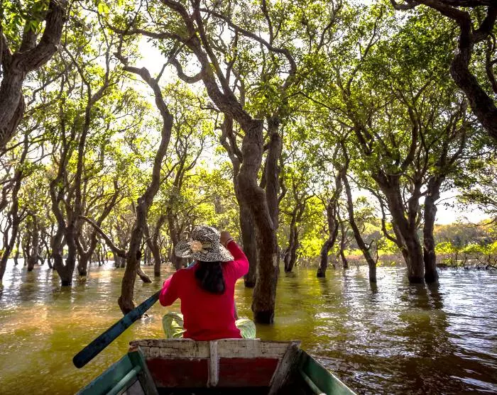 Du ankommer til bredden ved Tonle Sap-søen og går ombord i en båd, der sejler dig til en af søens flydende landsbyer. Her kommer du helt tæt på, hvordan livet leves hos de mange familier, der primært lever af fiskeri. Familierne lever langs søbredden i farverige huse, der står på lange stolper, så de kan klare den høje vandstand i regnsæsonen (august – start februar), hvor landsbyens små gader forvandles til små kanaler. I tørsæsonen (midt februar – juli) med den lave vandstand kan du frit se de høje stolper.