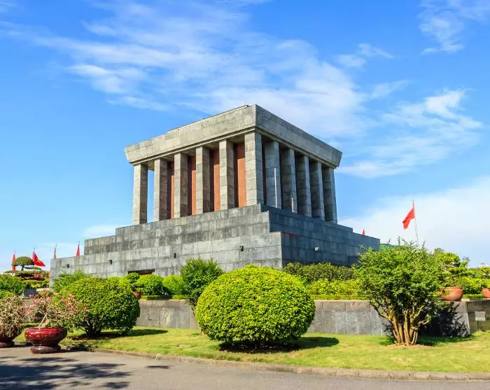 Du fortsætter forbi Ho Chi Minh-mausoleet, der ligger på Ba Dinh-pladsen. Her kan du beundre dette betydningsfulde vartegn udefra.