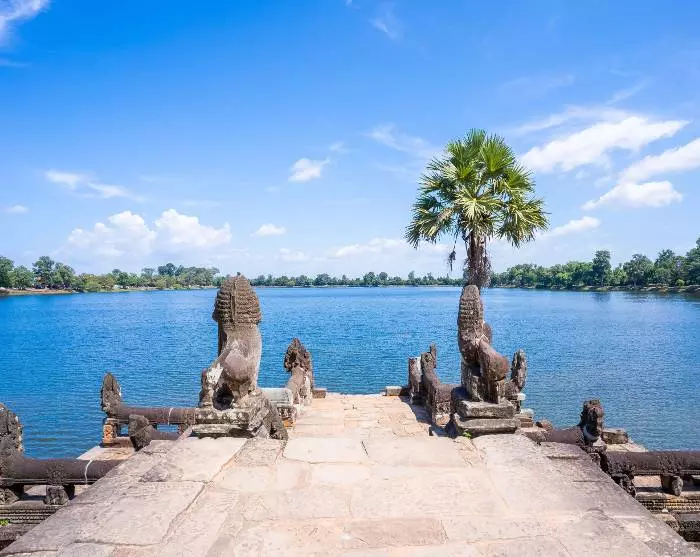 Du forlader Vietnam og flyver videre til den hyggelige by Siem Reap i Cambodia. Her kan du slentre i det franske kvarter med charmerende gamle huse eller langs byens flod, hvor du finder hyggelige cafeer og gode restauranter. Du oplever verdensvidunderet Angkor Wat på en morgencykeltur og oplever lokallivet på en dejlig sejltur på Tonle Sap-søen.
