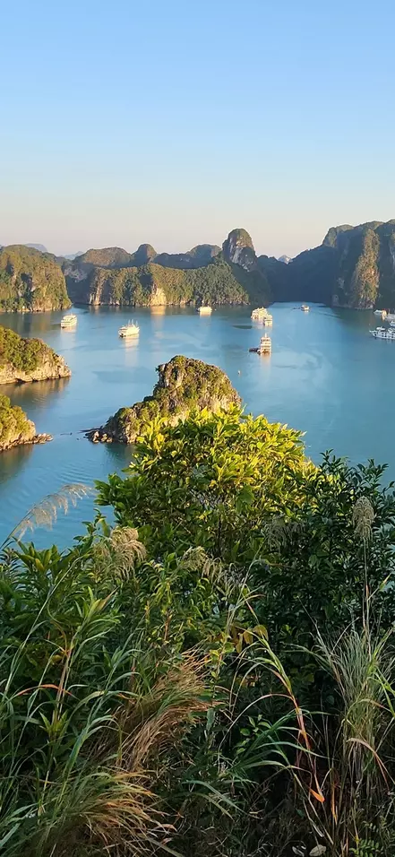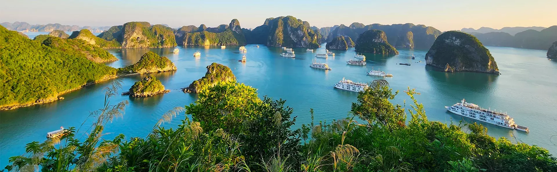 Fra Hanoi går turen mod øst til Ha Long-bugten, hvor du sejler på et minikrydstogt blandt kalkstensklipper. Du besøger Ti Top Island med mulighed for badning og udsigt fra toppen, udforsker en stor drypstensgrotte, overnatter ombord og vågner til morgenlys over det smaragdgrønne vand.