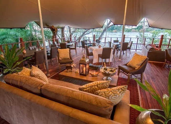 Ved siden af elefant-pladsen – med enestående udsigt til Zambezi floden – er bygget en café, som byder på frokost (inkluderet i prisen). Og hvilken frokost! Al maden er tilberedt af lokale produkter, som findes i nærområdet; frugter, urter, nødder, vilde blommer osv. og naturligvis tilpasset årstiden. Enkelte af råvarerne er faktisk også elefanternes livretter… Kokkene her kan virkelig trylle, og maden smager som en drøm! Menuen består af 3 retter inkl. vin til maden – alt sammen inkluderet i prisen.