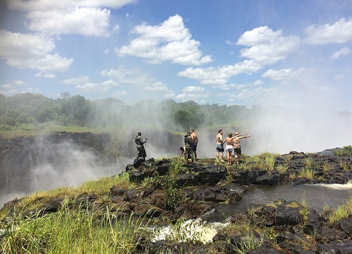 Hvis du besøger Victoria Falls i perioden september-november anbefaler vi, at du tilkøber en udflugt til Livingstone Island. I denne periode er vandstanden i Zambezi-floden lav, og vandfaldene derfor mindre end de er i f.eks. februar-maj. Til gengæld kan du i denne periode gøre ligesom David Livingstone; se vandfaldene fra Livingstone Island. Øen er åben for besøgende fra ca. midten af juli til slutningen af januar – afhængigt af vandstanden. Som David Livingstone sejler du herover, går i land og får en guidet rundvisning. Hvis ”Devil’s Pool” (en naturlig pool på øen, hvor du kan ligge i vandet og kigge ned ad klippevæggen) er åben, kan du også tage en guidet svømmetur heri.